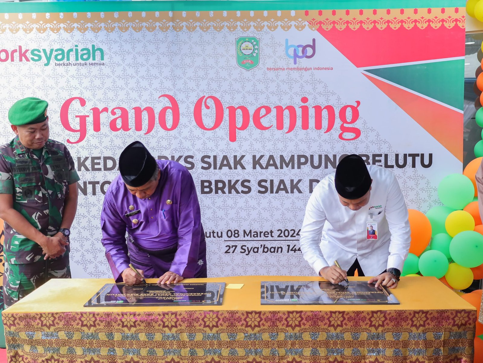 KANDIS (SIAK) – Bupati Siak Alfedri secara resmi buka dan gunting pita Grand Opening kantor kedai Bank Riau Kepri Syariah (BRKS) Siak Kampung Belutu dan kantor kedai BRKS Siak Dayun di Kampung Belutu Dusun Garut, jumat (8/3/2024).