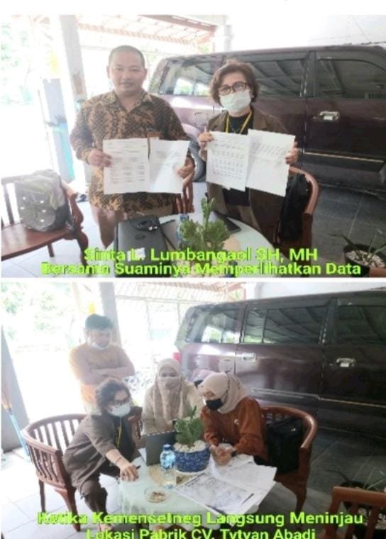 Hal itu dilaporkan Sinta L. Lumbangaol SH, MH ke Kemensetneg melalui pak Ade, karena sampai saat ini tidak ada Pemda Kota Bekasi memberikan surat resmi penutupan Pabrik CV. TYTYAN ABADI, bahkan plangnya saja masih menempel pada dinding bangunan pabriknya, serta bangunannya juga belum dibongkar.