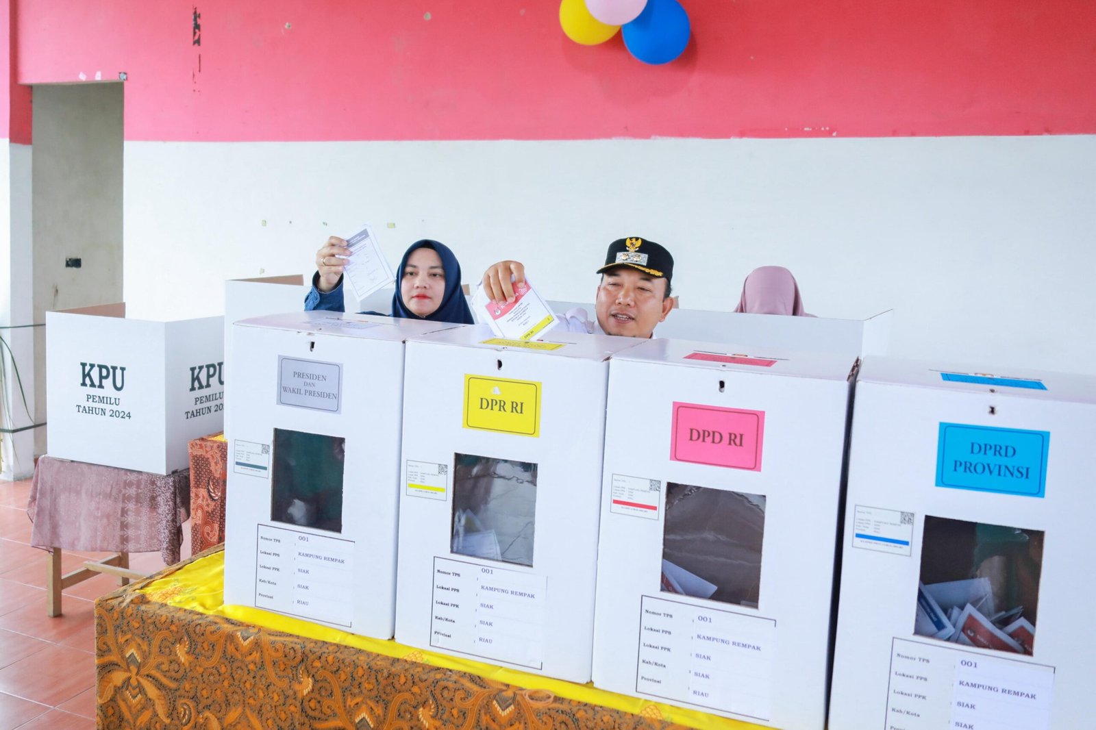 Wakil Bupati Siak Beserta Istri Salurkan Hak Pilih di TPS 1 Kelurahan Kampung Rempak